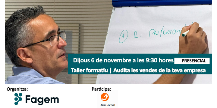 La FAGEM organitza un taller pràctic i exclusiu amb Jordi Mármol, soci de FAGEM i expert en estratègia comercial, adreçat a empreses que ja estan en marxa i volen portar la seva àrea comercial al següent nivell.