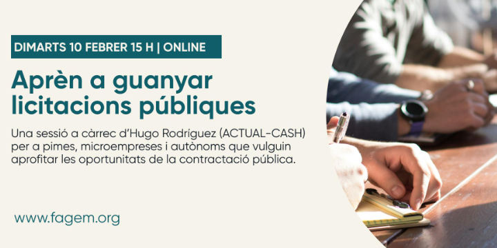 Sessió formativa online per a pimes, microempreses i autònoms interessats en aprofitar les oportunitats de la contractació pública. A càrrec d’Hugo Rodríguez (ACTUAL-CASH) aprèn a registrar-te, analitzar plecs i preparar ofertes amb més opcions d’èxit.