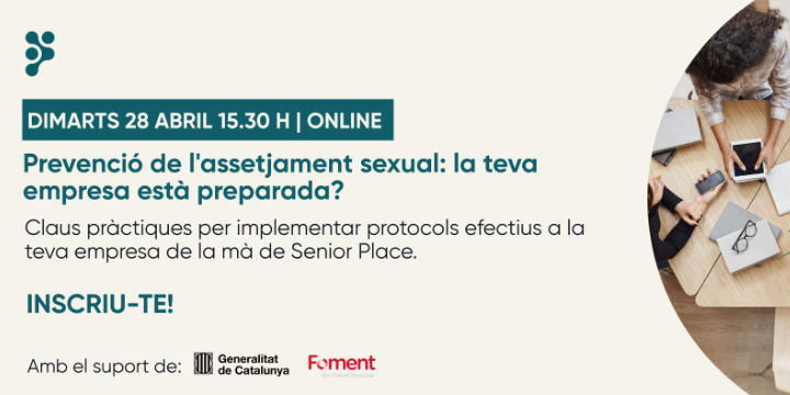 Les empreses han de disposar de protocols contra l’assetjament sexual, però també han de garantir entorns de treball segurs i respectuosos. El proper dimarts 28 d’abril, en sessió online de la mà de Senior Place, t’expliquem com implementar-los correctament i reforçar una cultura empresarial basada en el respecte.